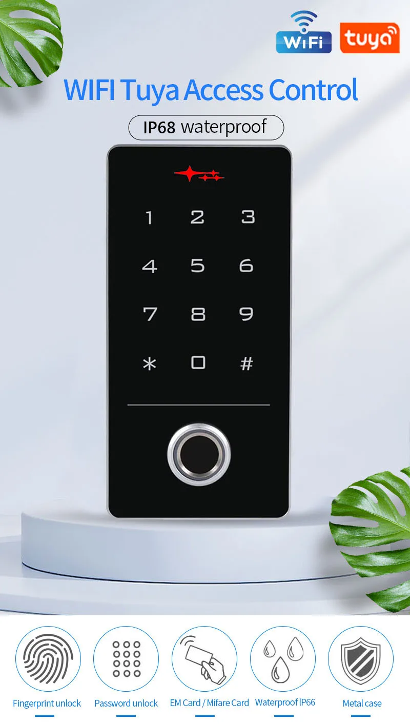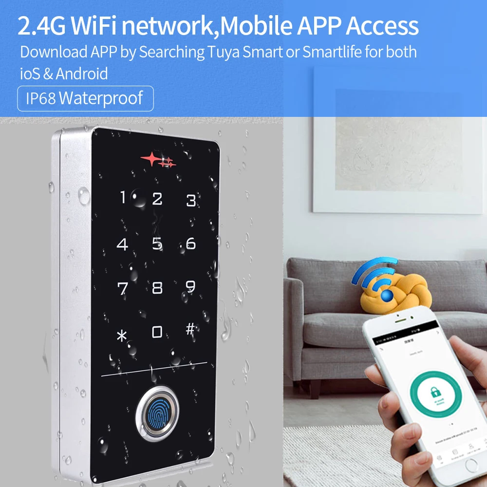 Waterproof Tuya App Wifi Access Control Keypad Fingerprint Smart Home Security Protection Digital Eletric RFID Door Lock System